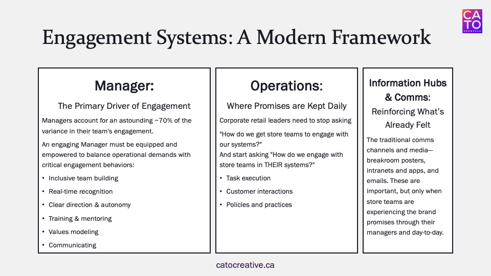 We used our store-centric activation framework, built around the three channels that most meaningfully improve the employee experience: